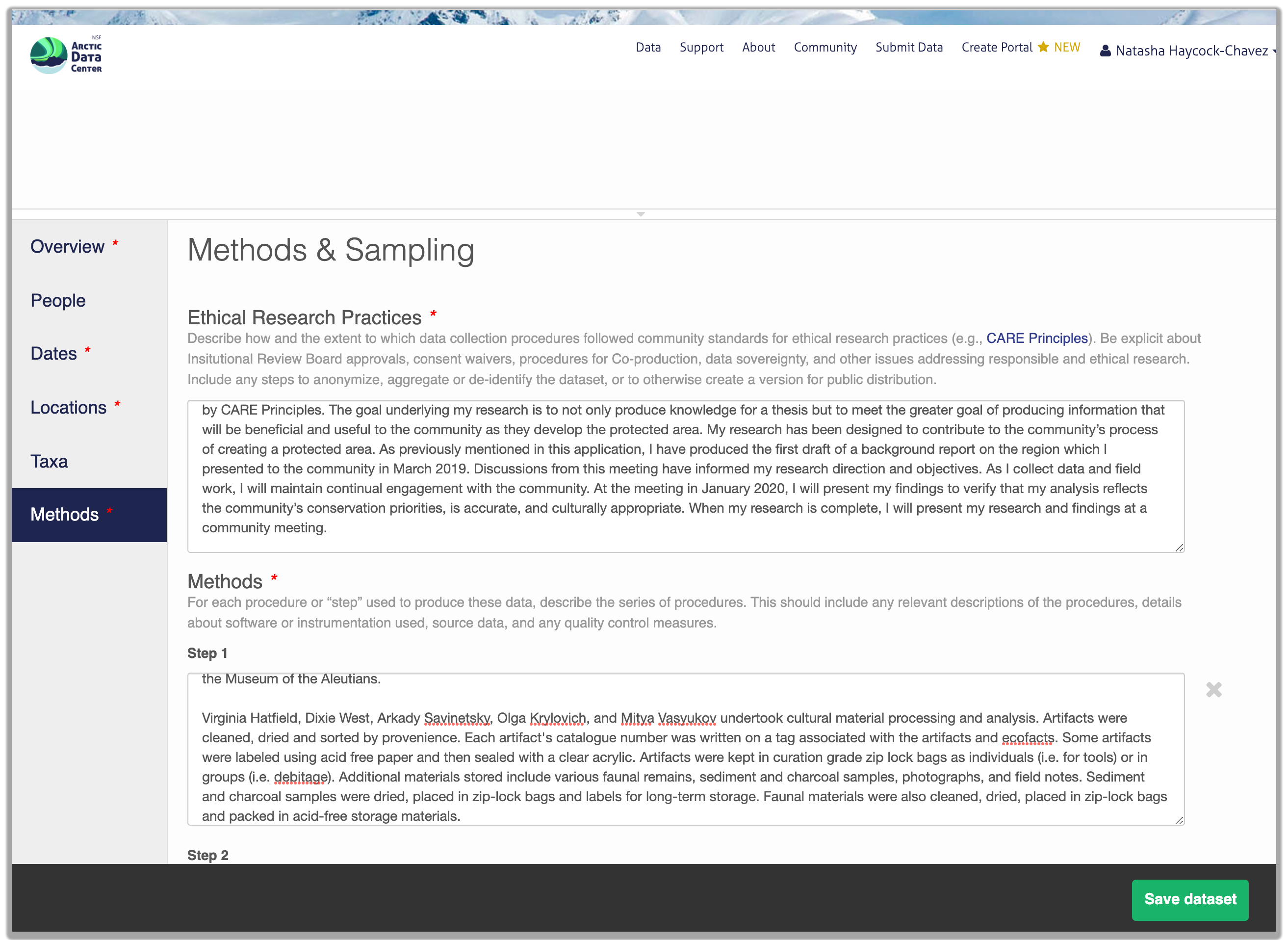 Assess the CAREness of your research. Like FAIR, CARE Principles are a lens to apply to your work. With CARE, it’s important to center human well-being in addition to open science and data sharing. To do this, reflect on how you’re giving access to Indigenous groups, on who your data impacts and the relationships you have with them, and the ethical concerns in your work. The Arctic Data Center, a data repository for Arctic research, now requires an Ethical Research Practices Statement when submitting data to them. They also have multiple guidelines on how to write and what to include in an Ethical Research Practices Statement.