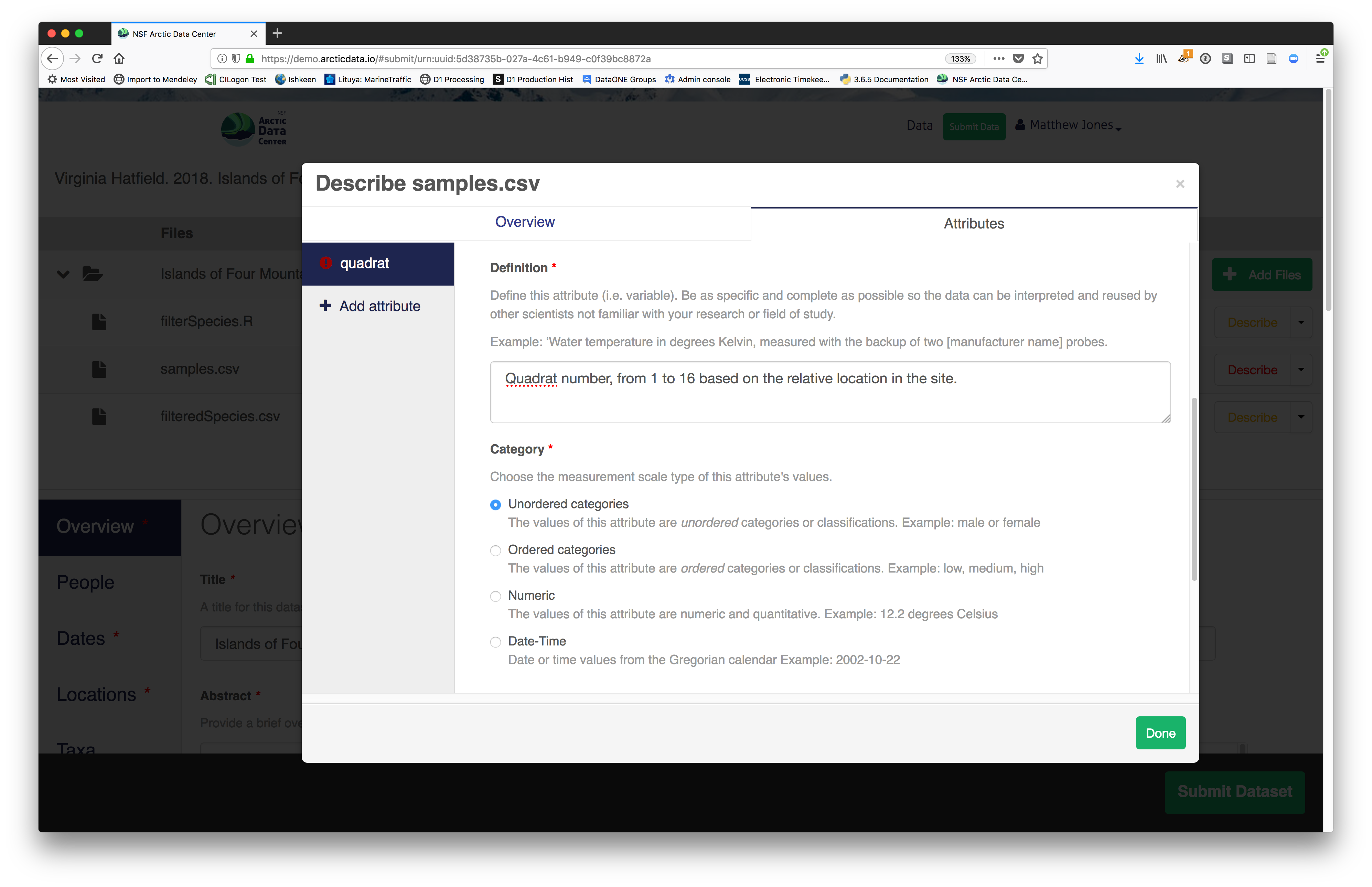 You’ll need to add these definitions for every variable (column) in the file. When done, click Done.