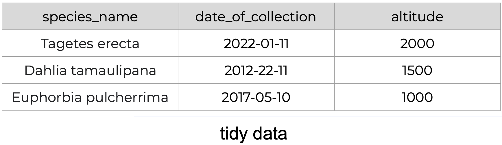 The following is an example of tidy data - it’s easy to see the three tidy data principles apply.
